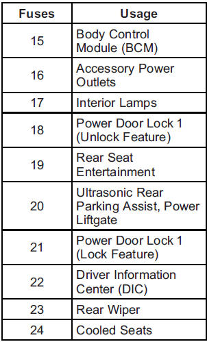 The vehicle may not be equipped with all of the fuses, relays, and features shown.